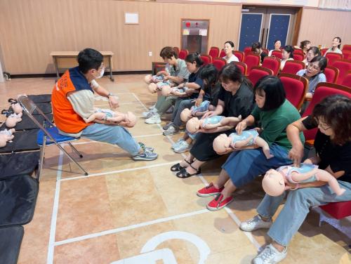 ±³À°¿¡ Âü¿©ÇÑ ¾î¸°ÀÌ ÀÌ¿ë½Ã¼³ Á¾»çÀÚµéÀº ¾Õ¼ ÀÀ±Þ»óȲ Çൿ ¿ä·É°ú ÁÖ¿ä ÀÀ±Þóġ °ü·Ã ¿Â¶óÀÎ À̷б³À°(2½Ã°£)À» À̼öÇÑ ÈÄ ½Ç½À ±³À°¿¡ Âü¿©ÇßÀ¸¸ç, ½ÉÆó¼Ò»ý¼ú°ú ÀÚµ¿½ÉÀåÃæ°Ý±â(AED) »ç¿ë¹ý µîÀ» ½ÇÁ¦ ¿¬½ÀÇØº¸¸ç ÀÀ±Þ»óȲ ¹ß»ý½Ã ´ëÀÀ¿ä·ÉÀ» ÀÍÇû´Ù.