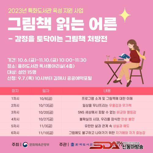 ¶ÇÇÑ 10¿ù 6ÀϺÎÅÍ ¡®±×¸²Ã¥ Àд ¾î¸¥¡¯À» ¿î¿µÇÑ´Ù. ¡®°¨Á¤À» Åä´ÚÀÌ´Â ±×¸²Ã¥ ó¹æÀü¡¯À» ÁÖÁ¦·Î 6ÁÖ°£ ³ªÀÇ ³»¸éÀÇ ´Ù¾çÇÑ °¨Á¤À» µé¿©´Ùº¸°í ÀÚ±âÀÌÇØÀÇ ÆøÀ» ³ÐÈ÷´Â ½Ã°£À» °¡Áú ¿¹Á¤ÀÌ´Ù.