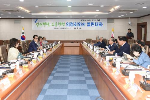 À̳¯ ¿¸° ´ëÈ¿¡´Â À̼®º¸ ÀÇÁ¤È¸ ȸÀåÀ» Æ÷ÇÔÇÑ ÀÇÁ¤È¸ ȸ¿ø 30¿©¸íÀÌ Âü¼®ÇØ Ç³ºÎÇÑ ÀÇÁ¤ °æÇè°ú ³ëÇϿ츦 ¹ÙÅÁÀ¸·Î ³²¿ø ½ÃÁ¤ Çö¾È¿¡ °üÇÑ Àǰ߰ú ³²¿ø¹ßÀüÀ» À§ÇÑ Çö½ÇÀûÀÎ Á¶¾ðÀ» µéÀ» ¼ö ÀÖ¾ú´Ù.