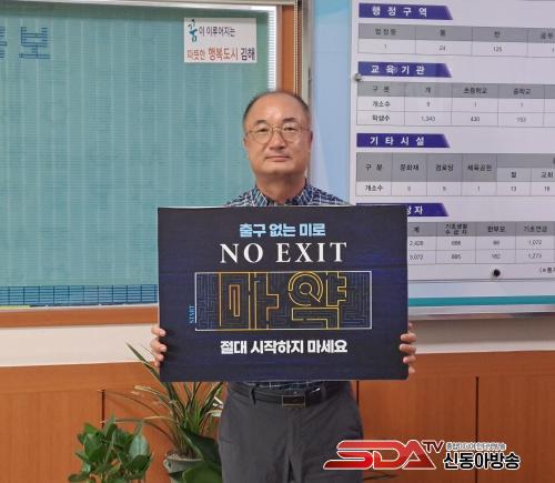 ¡®Ãⱸ¾ø´Â ¹Ì·Î(NO EXIT) ¸¶¾à! Àý´ë ½ÃÀÛÇÏÁö ¸¶¼¼¿ä!¡¯¶ó°í ÀûÈù ÆÖ¸»À» µç »çÁøÀ» SNS¿¡ ¿Ã¸®°í ÁÖ¹ÎÀÚġȸ, ÅëÀå µî ÀÚ»ý´Üü ȸ¿øµé¿¡°Ô ¸¶¾à Áßµ¶ÀÇ ½É°¢¼ºÀ» °øÀ¯Çϸç À̹ø Ä·ÆäÀο¡ Âü¿©ÇÏ¿´½À´Ï´Ù.