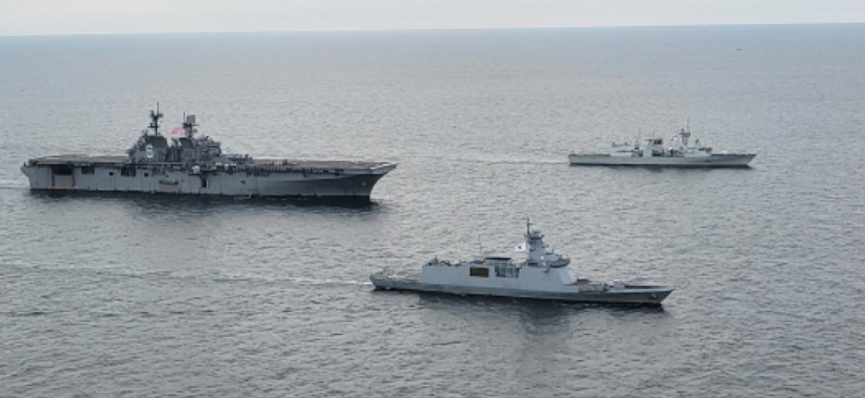 »çÁø=¼­ÇØ¿¡¼­ ´ëÁß±¹ ¾Ð¹Ú¿ë ¿¬ÇÕÈÆ·Ã¿¡ Âü°¡ÇÑ ¹Ì °­½À »ó·ú ¾Æ¸Þ¸®Å° ÇÔ, ¼­¿ï ÇÔ, º¥Äí¹ö ÇÔ (¿ÞÂÊ ºÎÅÍ). ÇØ±º