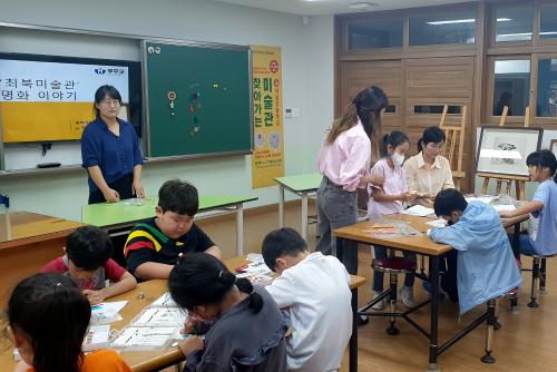 À̳¯ Çà»ç´Â °ü³» ¼Ò±Ô¸ðÇб³ ¾ÆÀ̵鿡°Ô Áö¿ªÀÇ ´Ù¾çÇÑ ¹®È­¿¹¼ú ÀÚ¿øÀ» ÇâÀ¯ÇÒ ¼ö ÀÖ´Â ±âȸ¿Í üÇèÀÇ ÀåÀ» Á¦°øÇÑ´Ù´Â ÃëÁö¿¡¼­ ¸¶·ÃÇÑ °ÍÀ¸·Î, 25¸íÀÇ ¾î¸°ÀÌÁý ¹× ÃʵîÇлýµéÀº °ø¸³¹Ì¼ú°üÀÎ ÃֺϹ̼ú°ü¿¡ ´ëÇØ ¾Ë¾Æº¸°í ¹«ÁÖ Ãâ½Å Á¶¼±½Ã´ë È­°¡ ÃÖºÏÀÇ À̾߱â¿Í ±×ÀÇ ÀÛǰ ¼¼°è¸¦ Çп¹»ç¿Í ÇÔ²² °¨»óÇÏ´Â ½Ã°£À» °¡Á³´Ù.