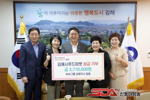 [½Åµ¿¾Æ¹æ¼Û´º½º=ÃÖ¼ÛÈ­±âÀÚ] AHA±èÇØÁö»ç(´ëÇ¥ ±¸°æÈñ) Á÷¿øµéÀÌ 26ÀÏ ±èÇØ½Ãû¿¡¼­ Ãß¼®À» ¸Â¾Æ ¾î·Á¿î ÀÌ¿ôÀ» Áö¿øÇϱâ À§ÇÑ ¼º±Ý 371¸¸¿øÀ» ±âŹÇß´Ù.