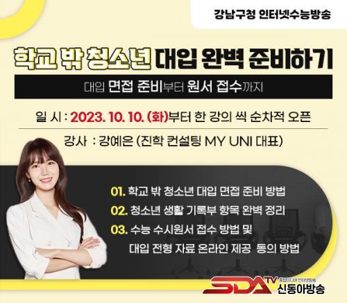[½Åµ¿¾Æ¹æ¼Û °­³²=À̽ŵ¿±âÀÚ]°­³²±¸°¡ ÀÎÅÍ³Ý ¼ö´É¹æ¼Û(°­³²Àΰ­)¿¡¼­ Çб³ ¹Û û¼Ò³âµéÀÇ ´ëÀÔ ¸éÁ¢ Áغñ¸¦ À§ÇÑ ¿Â¶óÀÎ ÀԽü³¸íȸ¸¦ 10ÀÏ~12ÀÏ °³ÃÖÇÑ´Ù.