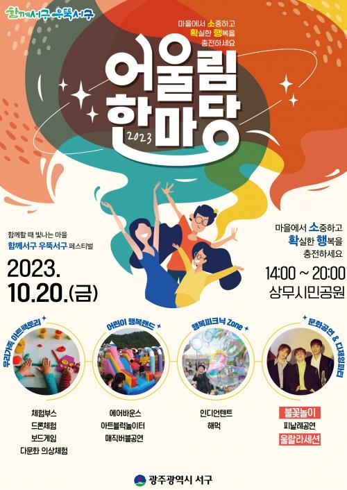 1ºÎ¿¡¼´Â Ŭ·¡½Ä ÇÁ·»Áî ¾î¸°ÀÌÇÕâ´ÜÀÇ ¡®10¿ùÀÇ ¾î´À ¸ÚÁø ³¯¿¡¡¯¿Í ¡®¹®¾îÀÇ ²Þ¡¯ °ø¿¬, Ä£Àýµµ½Ã ¼±¸ ¼±Æ÷½Ä, À¯°øÀÚ Ç¥Ã¢ µîÀÌ À̾îÁø´Ù. 2ºÎ¿¡¼´Â °ÅÁ¡µ¿-¿¬°èµ¿ÀÌ ±Ç¿ªº° ÆÀÀ» ÀÌ·ç°í ÁֹεéÀÌ Âü¿©ÇÏ´Â ¸í¶û¿îµ¿È¸¿Í 18°³ µ¿ ÁÖ¹ÎÀÚÄ¡(À§¿ø)ȸ°¡ Á÷Á¢ Á¦ÀÛÇÑ ¸¶À»È°µ¿ ¿µ»ó ÄÜÅ×½ºÆ® ½Ã»ó½ÄÀÌ ¿¸°´Ù. ¶Ç 3ºÎ¿¡¼´Â ¿ï¶ö¶ó¼¼¼Ç ÃÊû°ø¿¬, ¹êµå‧ºñº¸ÀÌ‧µðÁ¦Àׯį¼ µî ´Ù¾çÇÑ °ø¿¬, È·ÁÇÑ ºÒ²É³îÀ̰¡ ÆîÃÄÁø´Ù.
