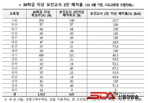 ¡¸ Çб³º¸°Ç¹ý ¡¹ ÀÌ °³Á¤µÈÁö 2 ³âÀÌ Áö³µÀ½¿¡µµ ºÒ±¸ÇÏ°í ¿©ÀüÈ÷ 2 ÀιèÄ¡¸¦ ¿Ï·áÇÏÁö ¾ÊÀº Áö¿ªµµ »ó´çÇÏ´Ù . Áö¿ªº°·Î »ìÆìº¸¸é , ¡ã ºÎ»ê , ¡ã ´ë±¸ , ¡ã ÀÎõ , ¡ã ±¤ÁÖ , ¡ã ¼¼Á¾ , ¡ã °æºÏÀÌ 36 ÇÐ±Þ ÀÌ»ó °ú´ëÇб³¿¡ º¸°Ç±³»ç 2 ÀÎ ¹èÄ¡¸¦ ¿Ï·áÇß´Ù .
