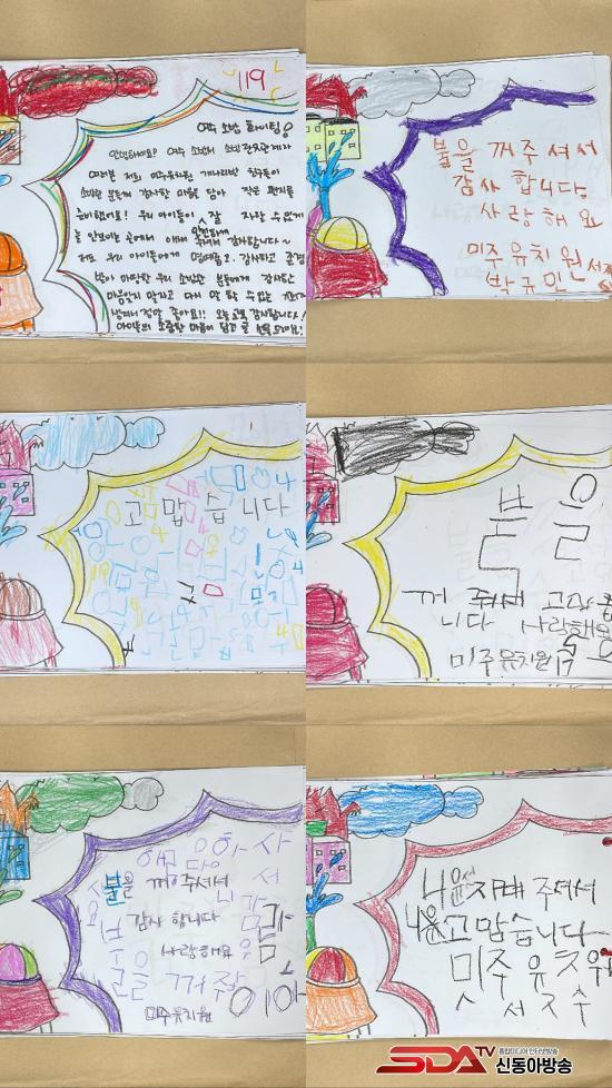 ¶ÇÇÑ, ¿©¼ö¼Ò¹æ¼ °ßÇп¡ °¨»çÇÔÀ» ´À³¤ À¯Ä¡¿ø¿¡¼´Â ¾ÆÀ̵éÀÌ ¹Ì¸® ¼Ò¹æ°ø¹«¿øÀ» »ý°¢Çϸç ÀÛ¼ºÇÑ °¨»çÆíÁö¸¦ °¡Á®¿Ô´Ù. ÀÌ¿¡ ÆíÁö¸¦ ¹ÞÀº ¼Ò¹æ°ø¹«¿øµéÀº¡°°í»ç¸®¼ÕÀ¸·Î »öÄ¥ÇÏ°í ±ÛÀ» ½èÀ» »ý°¢¿¡ ¸¶À½ÀÌ µû¶æÇØÁö¸ç, °¨»çÆíÁö·Î ¼Ò¹æ¿¡ ´ëÇÑ º¸¶÷°ú ÀںνÉ, Ã¥ÀÓ°¨À» ´Ù½Ã Çѹø ´À²¼´Ù.¡±¶ó¸ç¡°¾ÕÀ¸·Îµµ ´õ¿í ½Ã¹ÎµéÀÇ ¾ÈÀüÀ» ÁöŰ´Â µ¥ ÃÖ¼±À» ´ÙÇϰڴÙ.¡±¶ó°í ÀüÇß´Ù.