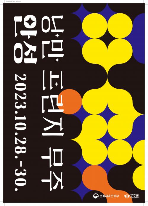 ¡®2023 ³¶¸¸ ÇÁ¸°Áö ¹«ÁÖ–¾È¼º¡¯ÀÇ °ø½Ä Æ÷½ºÅÍ´Â ¹«ÁÖÀÇ ¸¶À»À» ±¸¼ºÇÏ´Â Áֹΰú »óÁ¡, ±×¸®°í °¢ °ø°£°ú ¿¹¼ú¹®È­ÀÇ ±â¹ÝÀÌ µÇ´Â ¾ÆÆ¼½ºÆ®, °ü°´À» ¸ðµÎ 'Á¡'°ú '¼±'À¸·Î Çü»óÈ­ÇÏ°í ¡®¿ø¡¯À¸·Î ¿Ï¼º ½ÃÄÑ ¡®¸ðµÎ°¡ Çϳª·Î ¾î¿ì·¯Áü¡¯À» Ç¥ÇöÇß´Ù.
