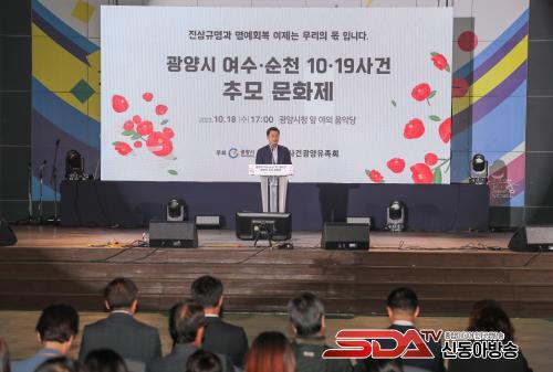 [½Åµ¿¾Æ¹æ¼Û=¹Ú±¤¿Á±âÀÚ] ±¤¾ç½Ã´Â ¿©¼ö¡¤¼øÃµ 10¡¤19»ç°Ç Èñ»ýÀÚ¿Í À¯Á·µéÀÇ ¸¶À½À» Ä¡À¯Çϱâ À§ÇØ ¿©¼ö¡¤¼øÃµ 10¡¤19»ç°Ç Á¦75Áֱ⸦ ¸Â¾Æ 18ÀÏ ½Ãû ¾Õ ¾ß¿Ü°ø¿¬Àå¿¡¼­ Ã߸ð¹®È­Á¦¸¦ °³ÃÖÇß´Ù.