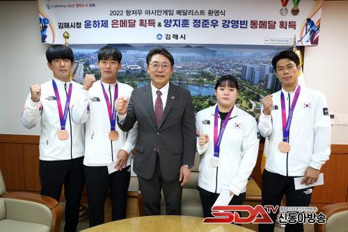 [½Åµ¿¾Æ¹æ¼Û´º½º=ÃÖ¼ÛÈ­±âÀÚ] ±èÇØ½Ã´Â Á¦19ȸ Ç×Àú¿ì ¾Æ½Ã¾È°ÔÀÓ¿¡¼­ ¿ì¼öÇÑ ¼ºÀûÀ» °ÅµÐ ±èÇØ½Ãû ¼Ò¼Ó ¸Þ´Þ¸®½ºÆ®µéÀ» ÃÊÃ»ÇØ ÃàÇÏÇÏ°í Æ÷»ó±ÝÀ» Àü´ÞÇß´Ù°í 11ÀÏ ¹àÇû´Ù.