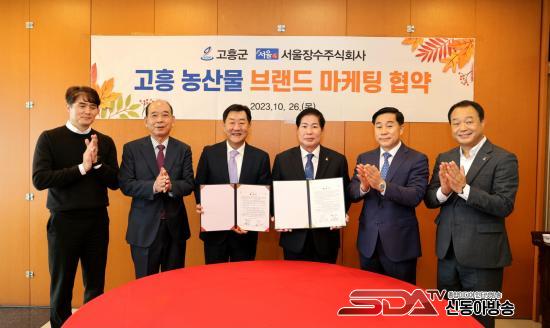 À̳¯ Çù¾à½Ä¿¡´Â °ø¿µ¹Î °íÈﱺ¼ö¸¦ ºñ·ÔÇØ ¹èÀ±»ó ¼¿ïÀå¼öÁÖ½Äȸ»ç ´ëÇ¥¿Í °ü°è ÀÓÁ÷¿øµéÀÌ Âü¼®ÇØ °íÈï À¯ÀÚ µî °íÈï ³ó»ê¹° ºê·£µù ¹× °øµ¿¸¶ÄÉÆÃ ÃßÁøÀ» À§ÇÑ ¾÷¹«Çù¾àÀ» ¸Î°í, °íÈï ³ó»ê¹°°ú °íÈï ³ó»ê¹°À» ¿ø·á·Î ÇÏ´Â Á¦Ç°ÀÇ ºê·£µåȸ¦ À§ÇØ »óÈ£ Çù·ÂÇϱâ·Î ¾à¼ÓÇß´Ù.