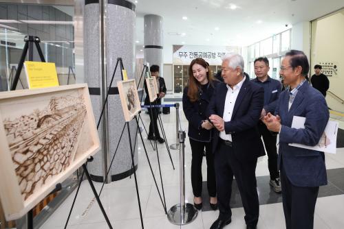 À̹ø Àü½Ãȸ´Â ¹«ÁÖ±º µµ½ÃÀç»ý ±â·ÏÈ »ç¾÷ Âü¿© ±³À°»ýµéÀÇ ÀÛǰÀ» Àü½ÃÇÏ´Â ÀÚ¸®·Î ³ª¹«ÆÇ À§¿¡ ¿ìµå¹ö´×±â(¸ñ°ø¿¹¿ë Àεαâ)¸¦ ÀÌ¿ëÇØ ¹«ÁÖÀÇ ÀÚ¿¬°ú °ÇÃ๰, °ñ¸ñ µîÀÇ Ç³°æÀ» ±â·ÏÇÑ ÀÛǰ 31Á¡ÀÌ Àü½ÃµÈ´Ù.