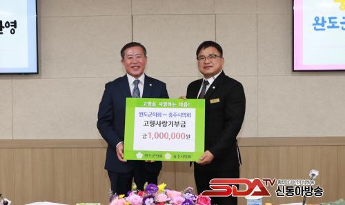 ¿Ïµµ±ºÀÇȸ(ÀÇÀå Çã±ÃÈñ)°¡ ÃæºÏ ÃæÁÖ½ÃÀÇȸ(ÀÇÀå ¹ÚÇØ¼ö)°¡ µÎ Áö¿ª °øµ¿¹ßÀü°ú ¿ìÈ£Çù·ÂÀ» ´ÙÁ®°¡±â À§ÇØ °íÇâ»ç¶û±âºÎ±ÝÀ» °¢°¢ ±âŹÇϱâ·Î Çß´Ù.