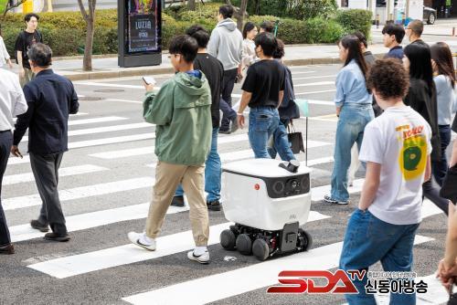 ½Ç³» ¹è´Þ·Îº¿ÀÌ ÄÚ¿¢½º¸ô ¸ÅÀå¿¡¼ À½½ÄÀ» ½Æ°í ÄÚ¿¢½º ¼¹®(µµ½É°øÇן¿ö) ÃâÀÔ±¸±îÁö À̵¿Çϰí, ¿©±â¼ ´ë±âÇϰí ÀÖ´ø ½Ç¿Ü ¹è´Þ·Îº¿ 5´ë°¡ À̾î¹Þ¾Æ Å×Çì¶õ·Î87±æ ÀÏ´ë ÁöÁ¤µÈ °Ç¹° 6°÷ °Ç¹° 6°³¼Ò : Å×Çì¶õ·Î87±æ 9, 13, 17, 21, 25, 29±îÁö ¹è´ÞÇÑ´Ù. ÀÌ °úÁ¤¿¡¼ ·Îº¿Àº Ä«¸Þ¶ó¿Í ¶óÀÌ´Ù(LiDAR) µî ¼¾¼¸¦ Ȱ¿ëÇØ º¸ÇàÀÚ¿Í Àå¾Ö¹°À» ÇÇÇϰí 2~3°³ÀÇ È¾´Üº¸µµ¿Í ½ÅÈ£µîÀ» °Ç³Ê´Â µî º¹ÀâÇÑ µµ½É ȯ°æÀ» ÀÚÀ²ÁÖÇàÇÏ°Ô µÈ´Ù.