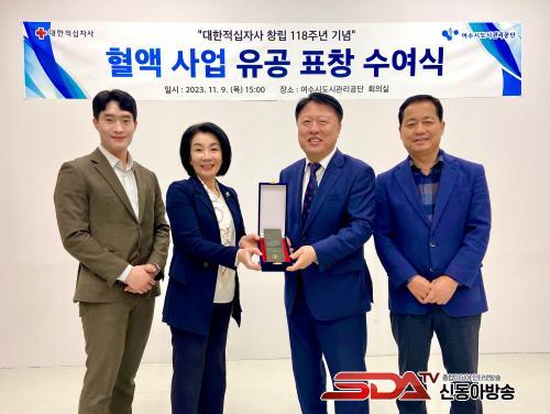 [½Åµ¿¾Æ¹æ¼Û¿©¼ö=±è±â³² ±âÀÚ] ¿©¼ö½Ãµµ½Ã°ü¸®°ø´Ü(ÀÌ»çÀå ±èÀ¯È­)Àº Áö³­ 10¿ù 27ÀÏ ´ëÇÑÀû½ÊÀÚ»ç·ÎºÎÅÍ Ã¢¸³ 118Áֳ⠱â³ä ¡®Ç÷¾× »ç¾÷ À¯°ø ǥâÆÐ¡¯¸¦ ¼ö»óÇß´Ù°í ¹àÇû´Ù.