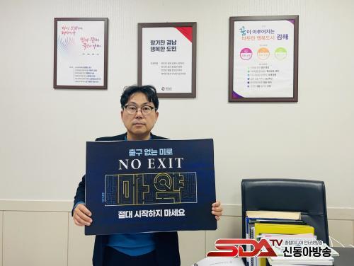 ±èÀç¿ë µ¿ÀåÀº ÀåÆÇ±Ô ±èÇØ½Ã ³»¿Üµ¿ÀåÀÇ Áö¸ñÀ» ¹Þ¾Æ Ä·ÆäÀο¡ Âü¿©ÇßÀ¸¸ç, ¡®Ãⱸ ¾ø´Â ¹Ì·Î, NO EXIT ¸¶¾à, Àý´ë ½ÃÀÛÇÏÁö ¸¶¼¼¿ä¡¯ ¹®±¸°¡ ÀûÈù À̹ÌÁö¿Í ÇÔ²² ÀÎÁõ »çÁøÀ» ÂïÀ¸¸ç ¸¶¾à ±ÙÀýÀ» À§ÇÑ Ä·ÆäÀο¡ ÈûÀ» º¸ÅÉ´Ù.