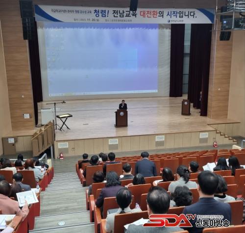 [½Åµ¿¾Æ¹æ¼Û ¿©¼ö=À̽ŵ¿±âÀÚ]Àü¶ó³²µµ±³À°Ã»(±³À°°¨ ±è´ëÁß)ÀÌ 11¿ù 20ÀÏ, 27ÀÏ ¼øÃµ¸¸»ýŹ®È­±³À°¿ø°ú 22ÀÏ, 23ÀÏ Àü³²±³À°Ã»±³À°¿¬±¸Á¤º¸¿ø¿¡¼­ ÃÑ ³× Â÷·Ê¿¡ °ÉÃÄ Á÷Àå ³» ±«·ÓÈû ¿¹¹æ ¹× û·Å °¨¼ö¼º Çâ»óÀ» À§ÇÑ ±³À°À» ½Ç½ÃÇÑ´Ù.