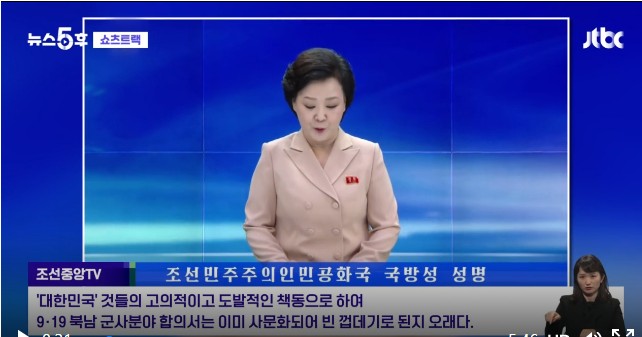 [½Åµ¿¾Æ¹æ¼Û=Á¶µµÈ¯ ±âÀÚ/ Lin jing zi ƯÆÄ¿ø] ëÅÁ¤ºÎ°¡ ºÏÀÇ Á¤Âû À§¼º ¹ß»ç¸¦ ºô¹Ì·Î 9¡¤19 ³²ºÏ ±º»çÇÕÀÇ È¿·ÂÀ» ÀϺΠÁ¤ÁöÇÒ °ÍÀ̶ó°í ¹ßÇ¥ÇÏÀÚ, ºÏÀº ¾Æ¿¹ ÆÄ±â¸¦ ¼±¾ðÇß´Ù.