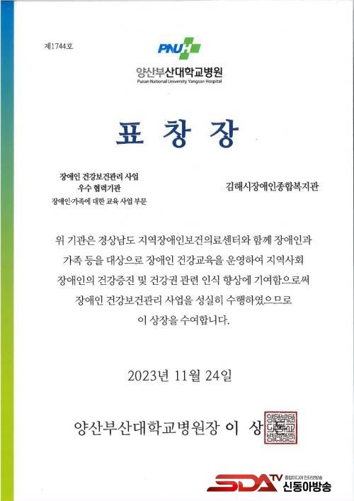 [½Åµ¿¾Æ¹æ¼Û´º½º=±èÁÖ¿¬±âÀÚ] (Àç)±èÇØ½Ãº¹ÁöÀç´Ü(´ëÇ¥ÀÌ»ç ÃÖÁ¤±Ô)¿¡¼­ ¿î¿µ ÁßÀÎ ±èÇØ½ÃÀå¾ÖÀÎÁ¾ÇÕº¹Áö°ü(°üÀå ¿©¹ÌÁø)Àº ÀÌ´Þ 24ÀÏ °æ»ó³²µµ Áö¿ªÀå¾ÖÀκ¸°ÇÀÇ·á¼¾ÅÍ(¼¾ÅÍÀå ½Å¿ëÀÏ)¿¡¼­ ÁÖ°üÇÏ´Â ¡®Àå¾ÖÀÎ °Ç°­º¸°Ç°ü¸® »ç¾÷ ¿ì¼ö Çù·Â±â°ü ǥâÀ塯À» ¼ö»óÇß´Ù.