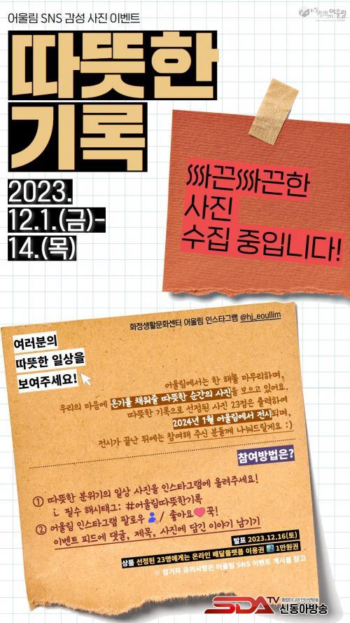 À̹ø À̺¥Æ®´Â ½Ã¹ÎµéÀÌ Á÷Á¢ ÃÔ¿µÇÑ µû¶æÇÑ ºÐÀ§±âÀÇ ÀÏ»ó »çÁøÀ» ÁÖÁ¦·Î Áö³­ ÇÑ ÇØ¸¦ µ¹¾Æº¸¸ç Ãß¿î °Ü¿ïÀ» µû¶æÇÑ ¸¶À½À¸·Î ¸¶¹«¸®Çϱ⸦ ±â´ëÇÏ´Â ¹Ù¶÷À» ´ã¾Ò´Ù. À̺¥Æ®¸¦ ÅëÇØ ¼öÁýµÈ »çÁø Áß 23Á¡Àº ³»³â 1¿ù ¾î¿ï¸² Àü½ÃȦ¿¡¼­ ½Ã¹Îµé¿¡°Ô °ø°³ÇÑ´Ù.