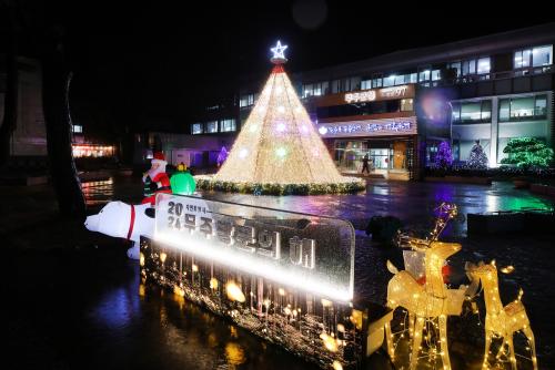 Âü¼®ÀÚµéÀº Á¡µî½Ä¿¡ ¾Õ¼ ¼ºÅºÀ» ÃàÇÏÇÏ´Â ±â³ä½Ä¿¡ Âü¿©ÇßÀ¸¸ç Àú³á 5½Ã 30ºÐ¿¡´Â ÇѸ¶À½À¸·Î ¼ö¸¸ °³ÀÇ Àü±¸·Î Àå½ÄµÈ ´ëÇüÆ®¸®¿¡ ºÒÀ» ¹àÇû´Ù. ¿ÃÇØ´Â ¡®2024³â ÀÚ¿¬Æ¯º°½Ã ¹«Áֹ湮ÀÇ ÇØ¡¯ ¼º°øÀ» ±â¿øÇÏ´Â ¶æÀ» ´ã¾Æ Àǹ̸¦ ´õÇß´Ù.