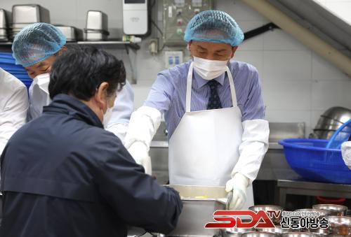 11½Ã¿¡´Â ¼ö¼Á¾ÇÕ»çȸº¹Áö°ü 1Ãþ ¼Ò´ã½Ä´ç¿¡¼ ¹«·á±Þ½Ä ºÀ»ç¸¦ Çϸç Ãë¾à°èÃþ ¾î¸£½ÅµéÀ» ¸¸³´Ù. À̰÷Àº Àα٠¼ö¼6´ÜÁö¿¡ °ÅÁÖÇÏ´Â ¸¸ 65¼¼ ÀÌ»ó ¾î¸£½Å 210¿©¸í¿¡°Ô ÁÖ6ȸ Á¡½É ½Ä»ç¸¦ Á¦°øÇÑ´Ù. À̳¯ »õÇØ Ư½ÄÀ¸·Î ³ª¿Â ¶±±¹À» Á÷Á¢ ¶°ÁÖ°í, ¾î¸£½Åµé°ú »õÇØ Àλç¿Í ´ö´ãÀ» ³ª´©¸ç µû¶æÇÑ »õÇØ¸¦ ¸ÂÀ» °èȹÀÌ´Ù.