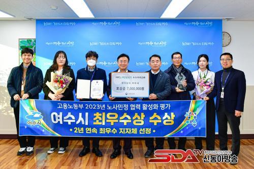 »çÁø=¿©¼ö½Ã°¡ ÃÖ±Ù °í¿ë³ëµ¿ºÎ ÁÖ°ü ¡®2023³â Áö¿ª ³ë»ç¹ÎÁ¤ Çù·Â Ȱ¼ºÈ­ »ç¾÷ Æò°¡¡¯¿¡¼­ Àü±¹ ¡®ÃÖ¿ì¼ö¡¯ ÀÚÄ¡´Üü·Î ¼±Á¤, °í¿ë³ëµ¿ºÎÀå°ü»óÀ» ¼ö»óÇß´Ù.