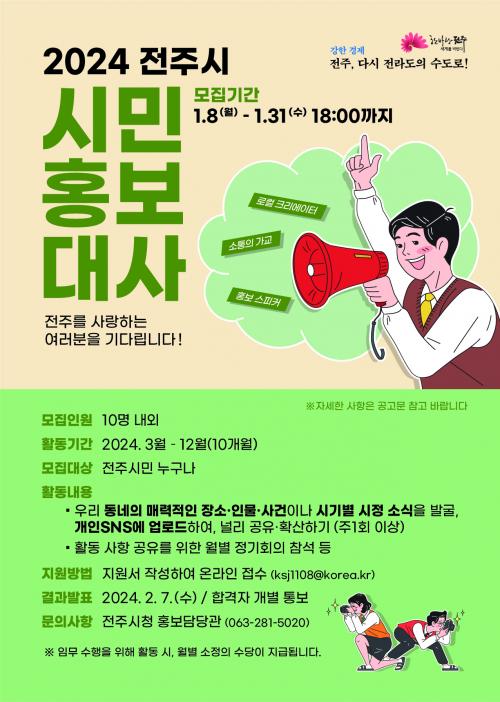 - ½Ã, ¿À´Â 31ÀϱîÁö ¡®ÀüÁֽà ½Ã¹ÎÈ«º¸´ë»ç¡¯·Î Ȱµ¿ÇÒ ÀüÁֽùΠ10¸í °ø°³ ¸ðÁý