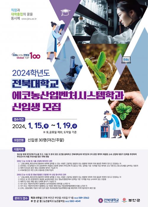 ÀüºÏ´ëÇб³ ¿¡ÄÚ³ó»ê¾÷º¥Ã³½Ã½ºÅÛÇаú´Â ³ó»ý¸í»ê¾÷ Àü¹®Àη ¾ç¼º°ú ¸ÂÃãÇü ÀçÁ÷ÀÚ Á÷¹«´É·Â °³¹ßÀ» À§ÇØ Áö³ 2021³âµµºÎÅÍ ºÎ¾È±º°ú ÀüºÏ´ëÇб³, »ê¾÷ü°¡ °è¾àÀ» ü°áÇÏ¿© ¿î¿µÇÏ´Â Àç±³À°Çü °è¾àÇаúÀÌ´Ù.