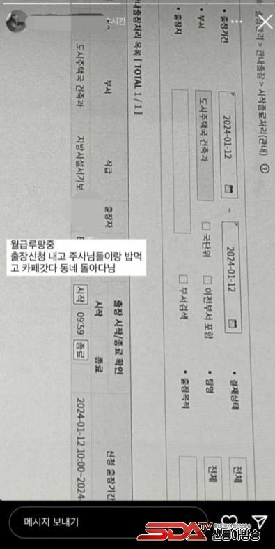 [½Åµ¿¾Æ¹æ¼Û´º½º=±èÁÖ¿¬±âÀÚ] ½Ãû 9±Þ °ø¹«¿øÀÌ ÇãÀ§·Î ÃâÀå ½Åû¼­¸¦ ¿Ã¸®°í, ÀÚ½ÅÀÇ sns¿¡ ½ÇÁ¦·Î´Â ½Ä´ç°ú Ä«Æä¸¦ µ¹¾Æ´Ù³æ´Ù°í ¹àÇô ³í¶õÀÌ µÇ°í ÀÖ½À´Ï´Ù.