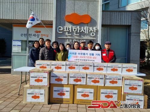 eÆíÇѼ¼»óºÀȲ¿ª¾ÆÆÄÆ® ÀÔÁÖÀÚ´ëǥȸÀÇ(ȸÀå ½Å´Üºñ)´Â ¸Å³â ¼³¸íÀý ¶§¸¶´Ù ¼Ò¿ÜµÈ ÀÌ¿ôµé¿¡°Ô µû¶æÇÑ ¸¶À½À» ÀüÇϰíÀÚ ¡®°£Æí½Äǰ ±âºÎÇÔ¡¯À» ¾ÆÆÄÆ® ³»¿¡ ¼³Ä¡ÇÏ¿© ÀÔÁֹεéÀÇ ÀÚ¹ßÀûÀÎ Âü¿©·Î ¸ðÀº ½Ä·áǰ µîÀ» µ¿¿¡ ±âºÎÇÏ¸ç µû¶æÇÑ ÀÌ¿ô»ç¶ûÀ» ½ÇÃµÇØ¿À°í ÀÖ´Ù.