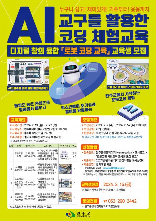 Âü¿©Èñ¸ÁÀÚ´Â ¿ÏÁÖ±º ´ëǥȨÆäÀÌÁö °ø°í¶õ¿¡ °ÔÀçµÈ ·Îº¿ÄÚµù üÇè±³À°»ý ¸ðÁý°ø°í¹® È®ÀÎÀ» ÅëÇØ ½Åû¼ ÀÛ¼º ÈÄ À̸ÞÀÏ·Î ½ÅûÇÏ¸é µÈ´Ù.