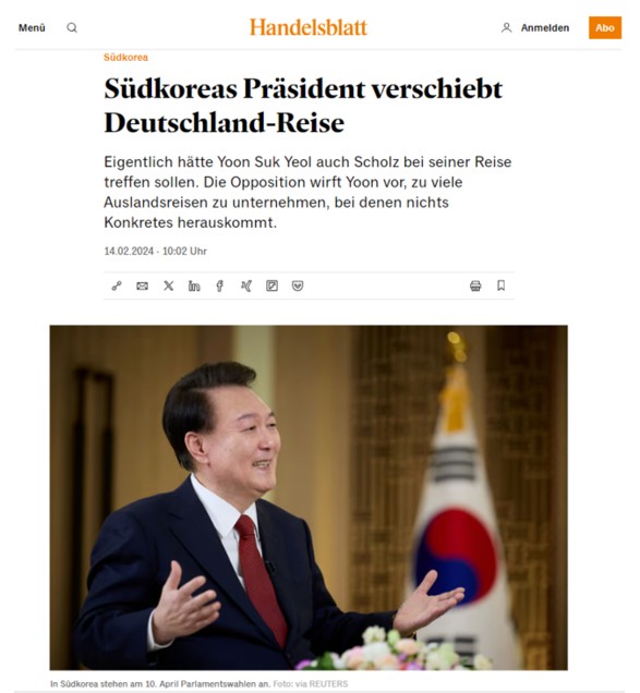 [Çѱ¹ ´ëÅë·É, µ¶ÀÏ ¹æ¹® ¿¬±â]¶ó´Â Á¦¸ñÀ¸·Î ±â»ç¿¡¼ "¿©·¯ °¡Áö ¿äÀÎÀÌ °ËÅ䵯´Ù´Â °Ô ¿¬±âÀÇ ÀÌÀ¯À̰í, ¾ç ±¹°¡°¡ ¼·Î ÇùÀǰ¡ ÀÌ·ïÁ³´Ù. ´õ ÀÚ¼¼ÇÑ °Ç ¾Ë·ÁÁöÁö ¾Ê¾Ò´Ù"°í º¸µµÇß´Ù.
