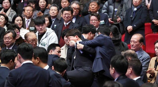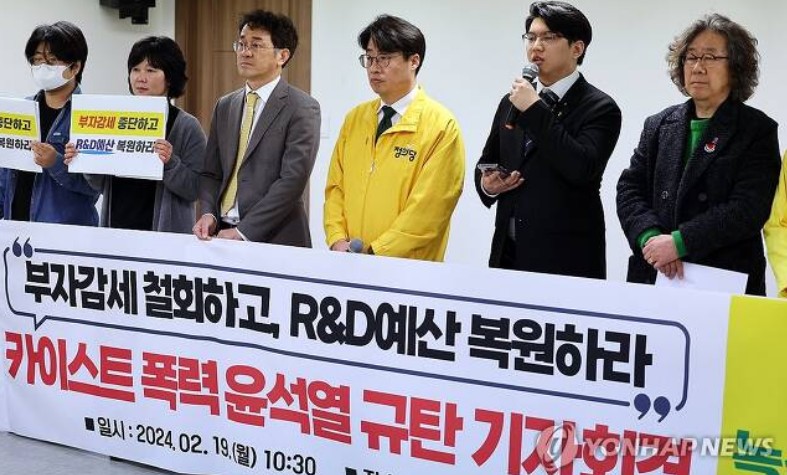 Çѱ¹°úÇбâ¼ú¿ø(KAIST¡¤Ä«À̽ºÆ®) ÇÐÀ§ ¼ö¿©½Ä¿¡¼ Á¤ºÎÀÇ ºÎÀÚ °¨¼¼¿Í R&D¿¹»ê »è°¨À» ºñÆÇÇÏ´Â ÇÇÄÏÀ» µé°í ±¸È£¸¦ ¿ÜÄ¡·Á´ø Á¹¾÷»ý ÀÔÀ» Ʋ¾î¸·°í »çÁö¸¦ °á¹ÚÇØ ²ø¾î³»´Â ÀÏÀÌ ¶Ç ¹ß»ýÇß´Ù.