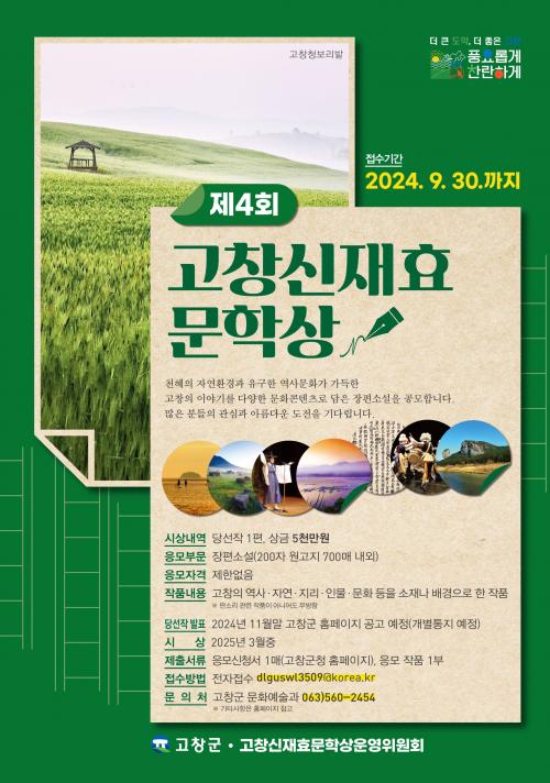 Á¢¼ö ±â°£Àº 9¿ù30ÀϱîÁö¸ç, ÃÖÁ¾´ç¼±ÀÛÀº 11¿ù Áß¿¡ ¹ßÇ¥ÇÒ ¿¹Á¤ÀÌ´Ù. ÀÀ¸ðÁÖÁ¦´Â °íâÀÇ ¿ª»ç ¡¤ ÀÚ¿¬ ¡¤ Áö¸® ¡¤ Àι° ¡¤ ¹®È µîÀ» ¼ÒÀ糪 ¹è°æÀ¸·Î ÇÑ ÀÛǰÀ¸·Î, ÆÇ¼Ò¸® °ü·Ã ÀÛǰÀÌ ¾Æ´Ï¾îµµ ¹«¹æÇÏ´Ù.