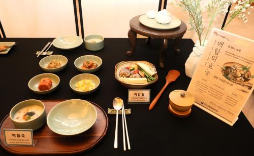 Çѱ¹¿Ü½Ä¾÷Áß¾Óȸ ºÎ¾È±ºÁöºÎ¿Í ¿ì¼®´ëÇб³ »êÇÐÇù·Â´ÜÀÌ °³ÃÖÇÑ À̳¯ ½Ã½Äȸ´Â ¸ð¾ç, Å©±â µî µµ¿¹°¡ ÀÚ¹®À» ¹ÞÀº ûÀڱ׸©À» »ç¿ëÇØ ºÎ¾È Ư»ê¹°À» Ȱ¿ëÇÑ ¸Þ´º¸¦ Àü½ÃÇÏ°í ½Ã½ÄÇß´Ù.