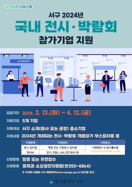 [½Åµ¿¾Æ¹æ¼Û=ÀÌÁöÇö±âÀÚ] ±¤ÁÖ±¤¿ª½Ã ¼­±¸(±¸Ã»Àå ±èÀ̰­)´Â ¿À´Â 4¿ù 12ÀϱîÁö ¡®±¹³» Àü½Ã¡¤¹Ú¶÷ȸ Âü°¡ Áö¿ø »ç¾÷¡¯¿¡ Âü¿©ÇÒ Áß¼Ò±â¾÷ 5°÷À» ¸ðÁýÇÑ´Ù.