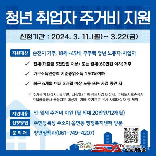 [½Åµ¿¾Æ¹æ¼Û ¼øÃµ=±è¿ëÈÆ ±âÀÚ] ¼øÃµ½Ã(½ÃÀå ³ë°ü±Ô)´Â û³â ±Ù·ÎÀÚ¿Í »ç¾÷ÀÚÀÇ ÁÖ°Å ¾ÈÁ¤À» µµ¸ðÇÏ°í °æÁ¦Àû ÀÚ¸³À» µ½±â À§ÇÑ 2024³â ⌜û³â Ãë¾÷ÀÚ Áְźñ Áö¿ø»ç¾÷⌟ ´ë»óÀÚ¸¦ ¸ðÁýÇÑ´Ù°í ¹àÇû´Ù.
