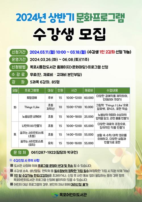 ¸ñÆ÷¾î¸°À̵µ¼­°ü, 2024³â »ó¹Ý±â ¹®È­ÇÁ·Î±×·¥ ¡¤ IT°­Á ¿î¿µ