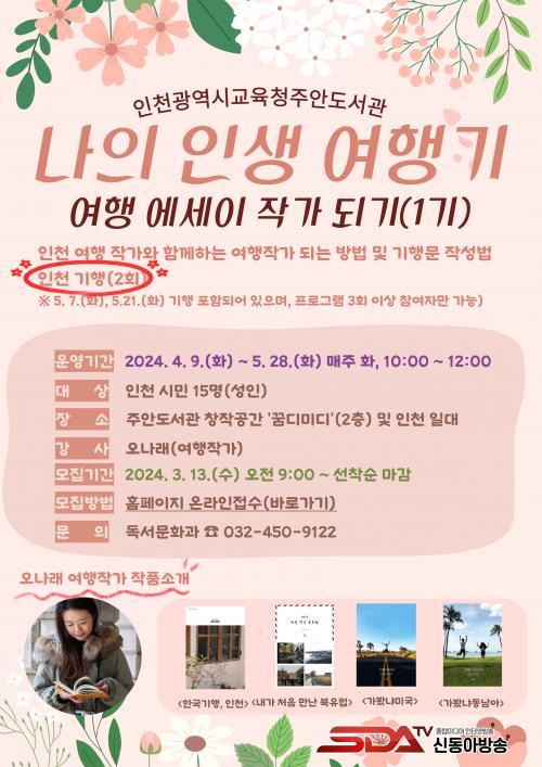 ¡¸³ªÀÇ Àλý ¿©Çà±â¡¹´Â 4¿ù 9ÀϺÎÅÍ 5¿ù 28ÀϱîÁö ¸ÅÁÖ È¿äÀÏ ¿ÀÀü 10½ÃºÎÅÍ 2½Ã°£ µ¿¾È ¿î¿µÇÑ´Ù. ¿©ÇàÀÛ°¡¿Í ÇÔ²² ¿©Çà ±Û¾²±âÀÇ ±âÃÊ, ÀÎõ ¿©ÇàÁö °øÀ¯ ¹× Ç¥Çö µî ´Ù¾çÇÑ ¿©Çà ¿¡¼¼ÀÌ ÀÌ·ÐÀ» 6ȸ¿¡ °ÉÃÄ ÇнÀÇϰí, Âü¿©ÀÚµéÀÌ Èñ¸ÁÇÏ´Â ÀÎõ ±âÇàÀ» 2ȸ ÁøÇàÇÑ´Ù. ÀÎõ¿¡ ¾ôÈù ³ª¸¸ÀÇ ÀλýÀ̾߱⸦ ´ãÀº ¿©Çà ¿¡¼¼ÀÌ ¹ß°£À¸·Î ÇÁ·Î±×·¥À» ¸¶¹«¸®ÇÒ ¿¹Á¤ÀÌ´Ù.