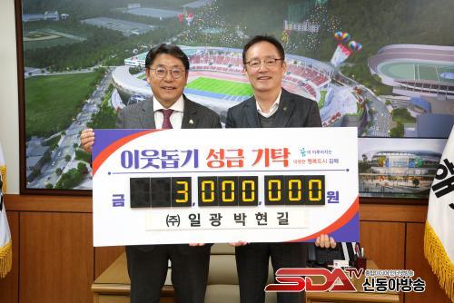 [½Åµ¿¾Æ¹æ¼Û´º½º=ÃÖ¼ÛÈ­±âÀÚ] ±èÇØ½Ã´Â 11ÀÏ ÁÖ½Äȸ»ç Àϱ¤(´ëÇ¥ ¹ÚÇö±æ)¿¡¼­ ¼º±Ý 300¸¸¿øÀ» ±âŹÇß´Ù°í ¹àÇû´Ù.