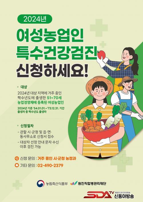 ±èÇØ½ÃÀåÀº ¡°¿©¼º³ó¾÷ÀÎÀº ³óÀÛ¾÷°ú °¡»ç¸¦ º´ÇàÇϸ鼭 À¯º´·üÀÌ ³ôÀºÆíÀ¸·Î À̹ø Ư¼ö°Ç°­°ËÁø »ç¾÷À» ÅëÇØ Áúº´À» »çÀü¿¡ ¿¹¹æÇÒ ¼ö Àֱ⸦ ±â´ëÇÑ´Ù¡±°í ÀüÇß´Ù.