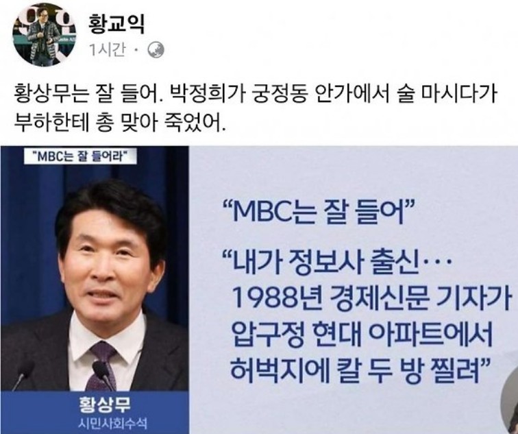 Ȳ»ó¹« »ç°ÇÀº, 14ÀÏ È² ¼ö¼®ÀÌ MBC Æ÷ÇÔ ÃâÀÔ ±âÀÚµé°ú ½Ä»ç ÀÚ¸®¿¡¼ ¡°MBC´Â Àß µé¾î¡±¶ó¸ç, MBC¸¦ ÄÛ Áý¾î, ¡®¿ÀÈ«±Ù ȸĮ Å×·¯ »ç°Ç¡¯À» ¾ð±ÞÇÑ °ÍÀ¸·Î,
