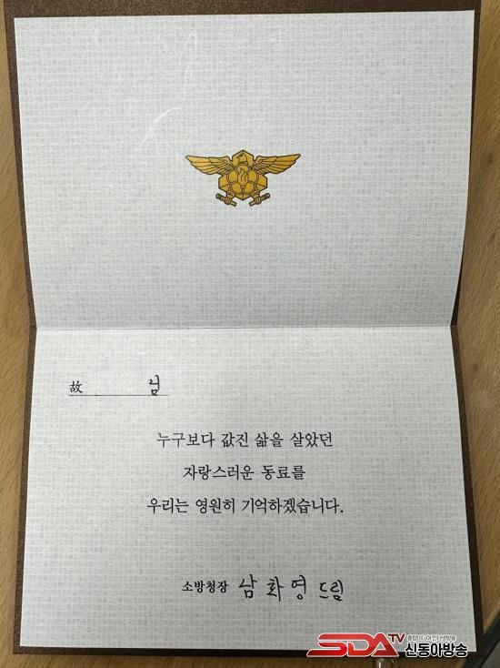¾öÁØ¿í ¼Ò¹æº»ºÎÀåÀº ¡°¾ÕÀ¸·Îµµ ¼øÁ÷ ¼Ò¹æ°ø¹«¿ø¿¡ ´ëÇÑ ¿¹¿ì¸¦ ³ôÀÌ°í ±× À¯°¡Á·ÀÇ »ýȰ ¾ÈÁ¤°ú º¹ÁöÇâ»óÀ» À§ÇØ ÃÖ¼±À» ´ÙÇϰڴÙ.¡±¶ó°í ¸»Çß´Ù.