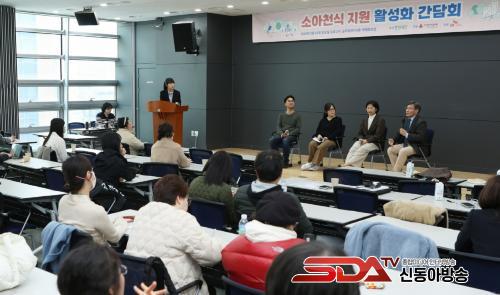 ±¹³» ¼Ò¾ÆÃµ½Ä ½ÇÅ Á¡°Ë°ú ȯÀÚ ¹× °¡Á·À» À§ÇÑ ÀÇ·á⋅±³À°Áö¿ø È®´ë ¹æ¾ÈÀ» ã±â À§ÇØ ÁغñÇÑ °£´ãȸ´Â È«¼öÁ¾ ±³¼ö(¼¿ï¾Æ»êº´¿ø ¼Ò¾ÆÃ»¼Ò³â°ú, °¡½À±â»ì±ÕÁ¦º¸°Ç¼¾ÅÍ ¼¾ÅÍÀå) ¿°Çý¿µ ±³¼ö(¼¿ïÀÇ·á¿ø ¼Ò¾ÆÃ»¼Ò³â°ú) ¹Ú¿ë¹Î ¼¾ÅÍÀå(¼¿ï½Ã ¾ÆÅäÇÇ.õ½Ä±³À°Á¤º¸¼¾ÅÍ) µî ºÐ¾ßº° Àü¹®°¡¿Í ¼Ò¾ÆÃµ½Ä Áö¿ø»ç¾÷ ´ë»óÀÚ µî 90¿© ¸íÀÌ Âü¼®ÇÑ °¡¿îµ¥ Áö³ 16ÀÏ(Åä) Á¾·Î±¸ ±Û·Î¹ú¼¾ÅÍ¿¡¼ ÁøÇàµÆ´Ù.