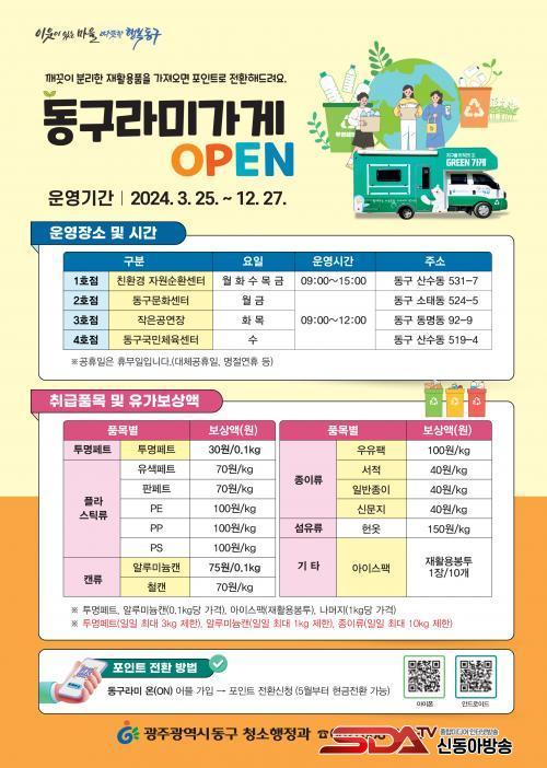 ÁֹεéÀº ÇÃ¶ó½ºÆ½¡¤Äµ¡¤Á¾ÀÌ·ù µî ÀçȰ¿ëǰÀ» ±ú²ýÇÏ°Ô ºÐ¸® ¼ö°ÅÇØ ¡®µ¿±¸¶ó¹Ì °¡°Ô¡¯¿¡ ¹æ¹®Çϸé ǰ¸ñº°·Î ¹«°Ô¸¦ ÃøÁ¤Çϰí, Æ÷ÀÎÆ®·Î ÀüȯÇÑ ÈÄ ¡®µ¿±¸¶ó¹Ì ¿Â(ON) ¾îÇá¯À» ÅëÇØ Çö±ÝÀ¸·Î º¸»ó¹ÞÀ» ¼ö ÀÖ´Ù.