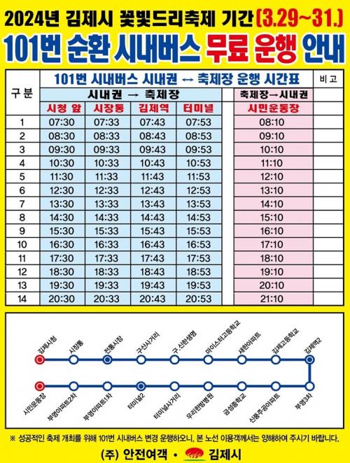 Á¤¼ºÁÖ ±èÁ¦½ÃÀåÀº ¡°À̹ø ²Éºûµå¸® ÃàÁ¦¸¦ ½ÃÀÛÀ¸·Î, 4¿ùÀÇ ¸ð¾Ç»ê ÃàÁ¦¿Í 10¿ùÀÇ ÁöÆò¼± ÃàÁ¦¿¡µµ ´ëÁß±³ÅëÀ» ÀÌ¿ëÇØ Æí¸®ÇÏ°Ô ÃàÁ¦ÀåÀ¸·Î À̵¿ÇÒ ¼ö ÀÖµµ·Ï ¹«·á ½Ã³»¹ö½º È®´ë µî ½Ã¹ÎÀÌ Ã¼°¨ÇÒ ¼ö ÀÖ´Â ±³Å뺹Áö ½ÇÇö¿¡ ÃÖ¼±À» ´ÙÇϰڴÙ.¡±°í ¸»Çß´Ù.