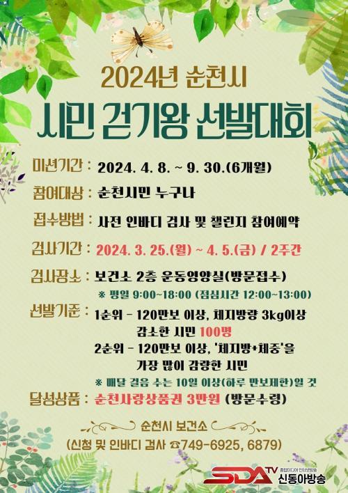 ½Ã °ü°èÀڴ¡°¼øÃµ ½Ã¹Îµé ½º½º·Î °Ç°ÇÑ ¿îµ¿ ½À°ü, ÀûÁ¤ üÁßÀ¯Áö, 1ÀÏ ¸¸º¸°È±â¸¦ Áö¼ÓÀûÀ¸·Î ½ÇõÇÒ ¼ö Àִ ȯ°æÀ» Á¶¼ºÇϱâ À§ÇØ °Ç° °È±â ÇÁ·Î±×·¥À» ´Ù¾çÇÏ°Ô ¸¸µé¾î ³ª°¥ °èȹÀÌ´Ù¡±¸ç, ¡°À̹ø ½Ã¹Î °È±â¿Õ µµÀü¿¡ ¸¹Àº ½Ã¹ÎÀÌ Âü¿©ÇØ °³Àκ° ü·Â»óÅ Á¡°Ë ¹× °Ç°°ü¸®¸¦ ÇØ ÁÖ½Ç °Í¡±À» ´çºÎÇß´Ù.