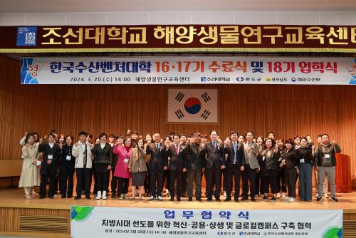 ½Å¿ìö ¿Ïµµ±º¼ö´Â Ãà»ç¸¦ ÅëÇØ ¼ö·á»ý°ú ÀÔÇлýµé¿¡°Ô ¡°±³À° °úÁ¤¿¡¼ ¾òÀº Àü¹® Áö½Ä°ú °æÇèÀ» ¹ÙÅÁÀ¸·Î ¿ì¸®³ª¶ó ¹Ì·¡ ¼ö»ê¾÷À» À̲ø¾î ÁÖ½Ã±æ ¹Ù¶õ´Ù¡±¸é¼ ¡°¼ö»ê¾÷ÀÌ Áö¼Ó °¡´ÉÇÑ »ê¾÷ÀÌ µÉ ¼ö ÀÖµµ·Ï ÀüÅë»ê¾÷»Ó¸¸ ¾Æ´Ï¶ó ÇØ¾çÀÚ¿øÀ» Ȱ¿ëÇÑ ÇØ¾çÄ¡À¯¿Í ÇØ¾ç¹ÙÀÌ¿À µî ½Å ÇØ¾ç»ê¾÷ ÃßÁø¿¡µµ Àü·ÂÀ» ´ÙÇϰڴ١±¶ó°í ¸»Çß´Ù.