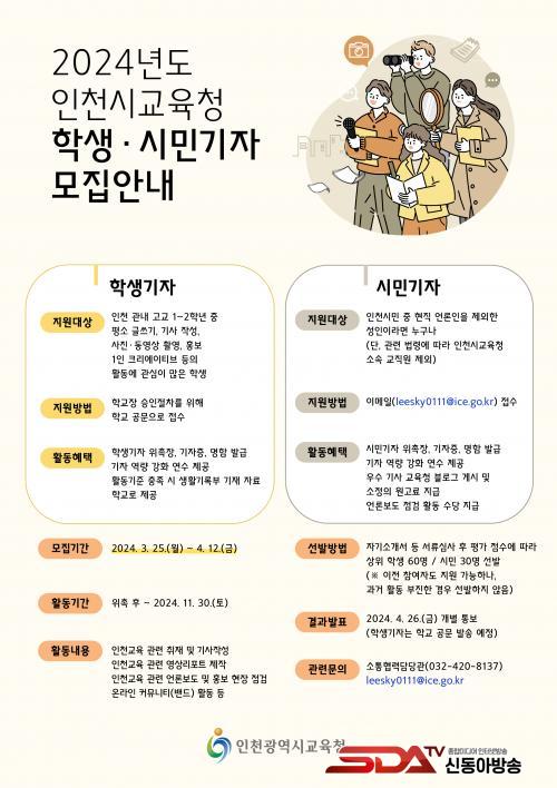 ¼±¹ßµÈ Çлý‧½Ã¹Î±âÀÚ´Â ÀÎõ ±³À° °ü·Ã ±â»ç ÀÛ¼º ¹× ´º½º¸®Æ÷Æ® Á¦ÀÛ µî Ȱµ¿¿¡ Âü¿©Çϸç, ±â»ç ÀÛ¼º ½Ç¹«¸¦ À§ÇÑ Àü¹®°¡ ¿¬¼ö¸¦ Áö¿øÇÑ´Ù. Çлý±âÀÚ È°µ¿Àº ÀÎõ½Ã±³À°Ã»ÀÌ ÁÖÃÖ‧ÁÖ°üÇϰí Çб³Àå ½ÂÀÎ ÈÄ ÁøÇàÇϱ⠶§¹®¿¡, ÀÏÁ¤ ±âÁØÀ» ÃæÁ·Çϸé Çб³»ýȰ±â·ÏºÎ¿¡ Ȱµ¿ ³»¿ªÀ» ±âÀçÇÒ ¼ö ÀÖ´Ù.